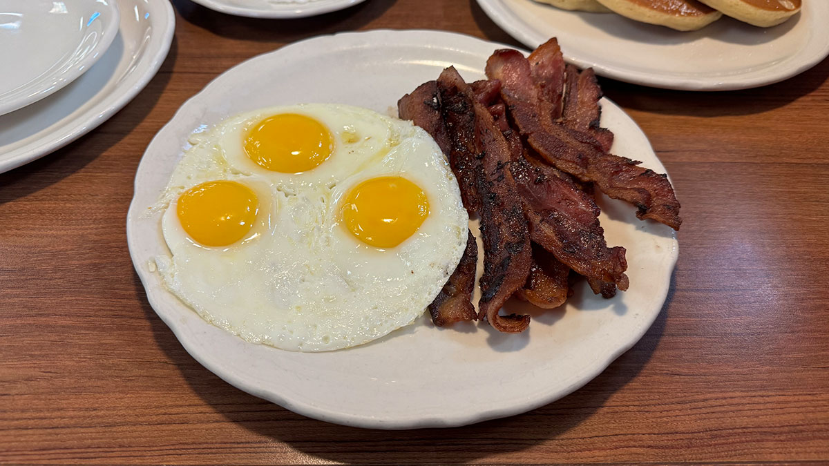 Egg whites, turkey sausage, wheat toast, water. Of course they don’t want us to eat our breakfast.